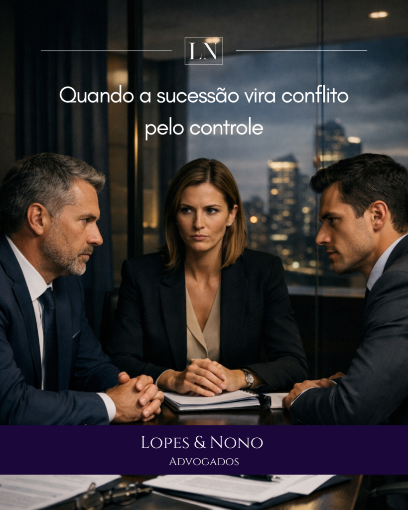 À medida que o conflito se intensifica, ele tende a migrar para uma questão central: quem controla a empresa. Nesse estágio, não se discute mais apenas: